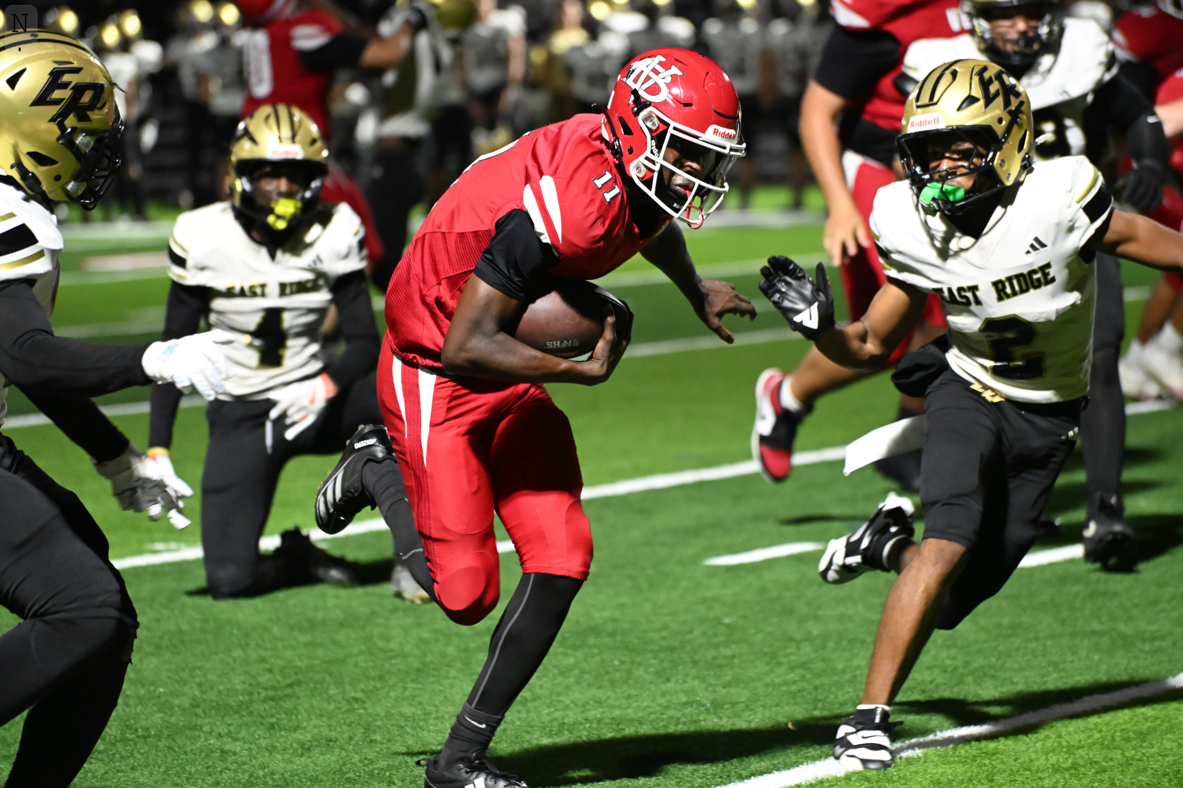   East Ridge rushing: The East Ridge run game struggled throughout the night, managing just 45 yards on 26 rushing attempts, an average of 1.7 yards per carry, which made it difficult for their offense to sustain drives.